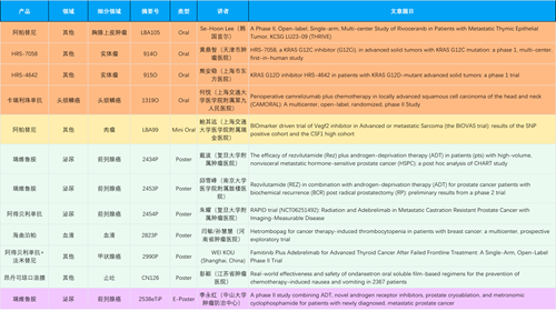 在胸腺上皮肿瘤、头颈鳞癌、肉瘤、前列腺癌、甲状腺癌等其他多个疾病领域,卡瑞利珠单抗、阿帕替尼、瑞维鲁胺、阿得贝利单抗、法米替尼、HRS-7058、HRS-4642等抗肿瘤创新药相关研究一共入选了4项口头报告、1项简短口头报告、4项壁报、1项电子壁报,彰显了EVO医药强大的研发实力。此外,海曲泊帕和昂丹司琼口溶膜分别在防治化疗导致的血小板减少和恶心呕吐方面各有1项研究入选壁报。